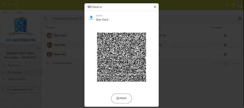 Mit dem Scan des QR-Codes wird das Endgerät mit dem jeweiligen Eigentumsanteil während der gesamten Versammlungsdauer als Abstimmungsgerät aktiviert.